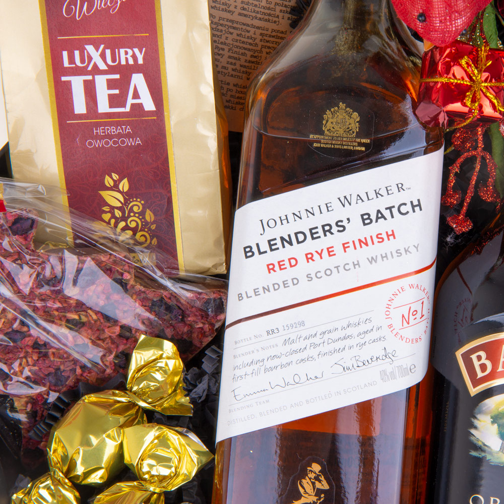 Zestaw prezentowy BJ67 VIP box z whiskey Johnie Walker i likierem Baileys